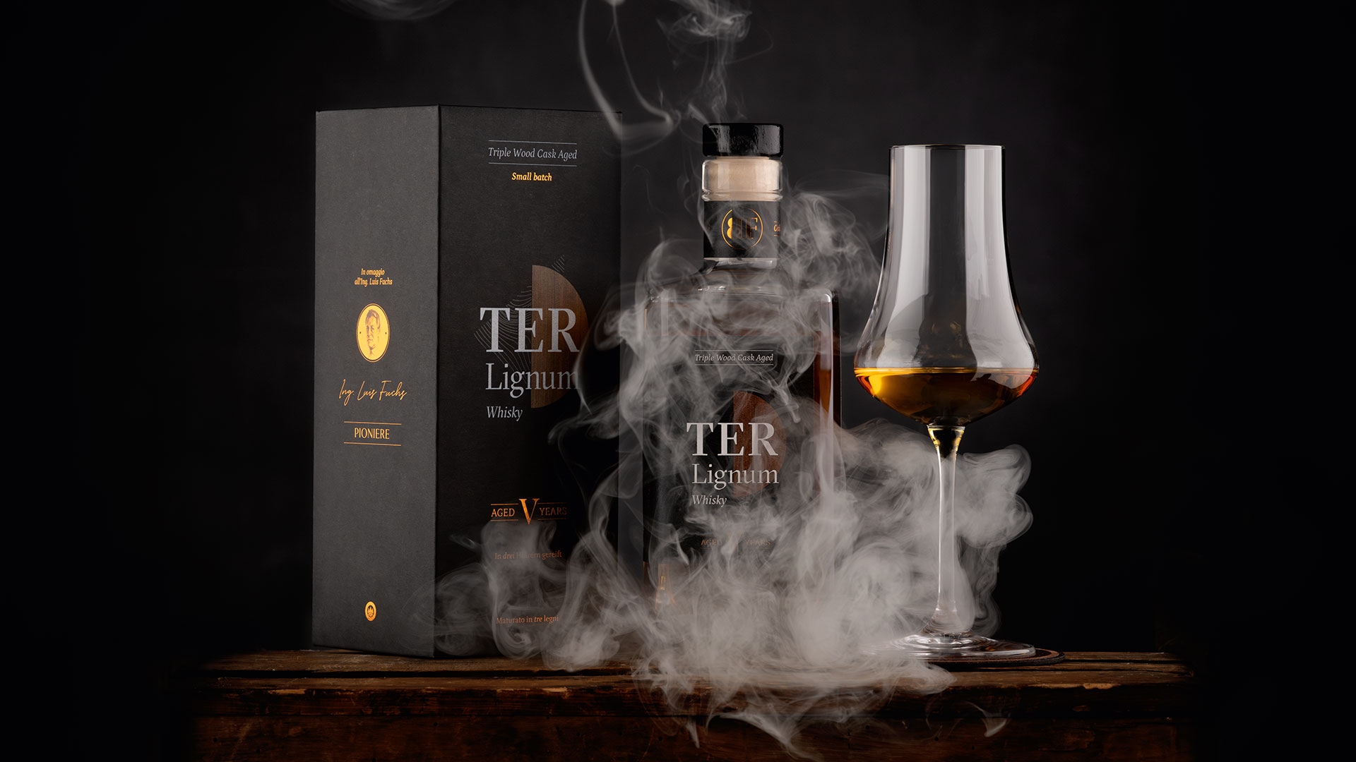 TER Lignum prende il nome dai tre legni delle botti in cui riposa e matura: rovere, ciliegio e larice. Gli stessi che conferiscono al whisky le sue caratteristiche inconfondibili: