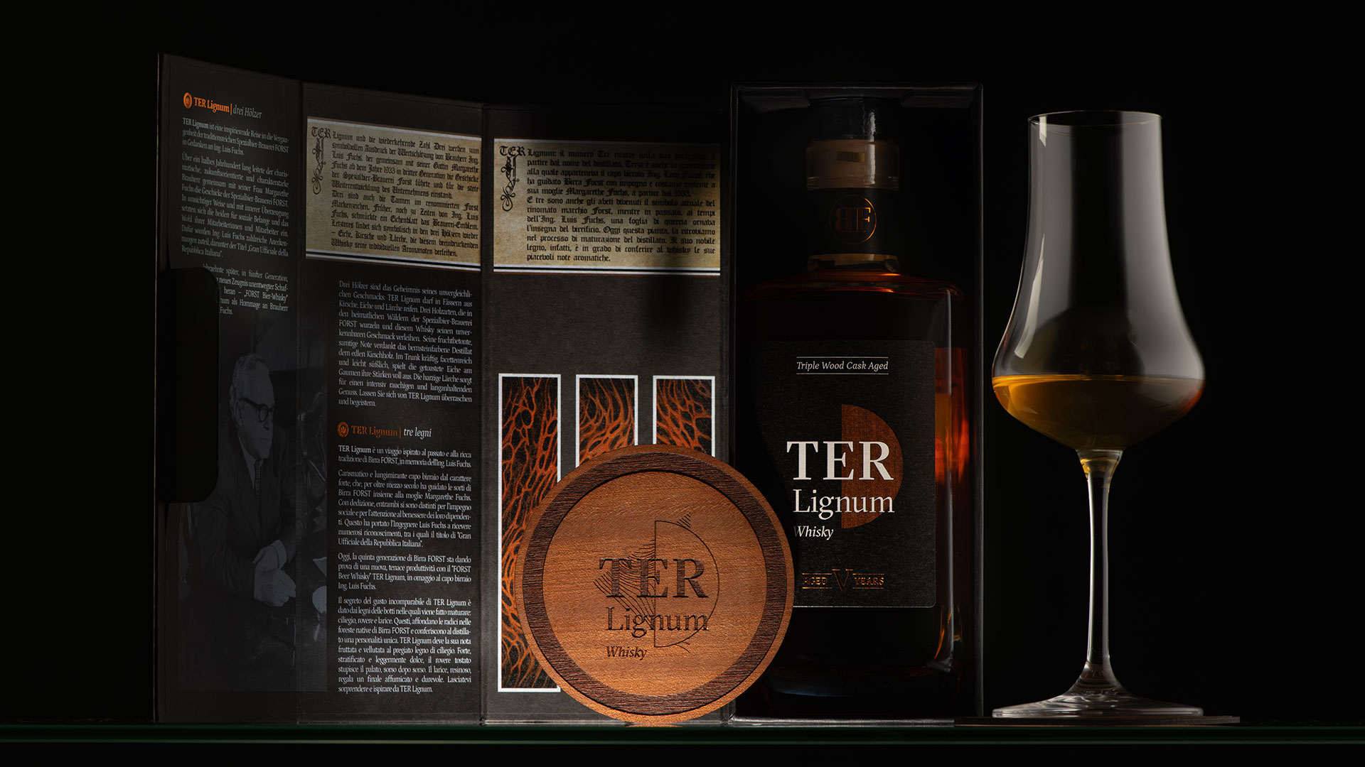 TER Lignum è un viaggio ispirato al passato e alla ricca tradizione di Birra FORST, è un omaggio all’Ing. Luis Fuchs. Carismatico e lungimirante capo birraio dal carattere forte che, per oltre mezzo secolo, ha guidato le sorti di Birra FORST insieme alla moglie Margarethe Fuchs.